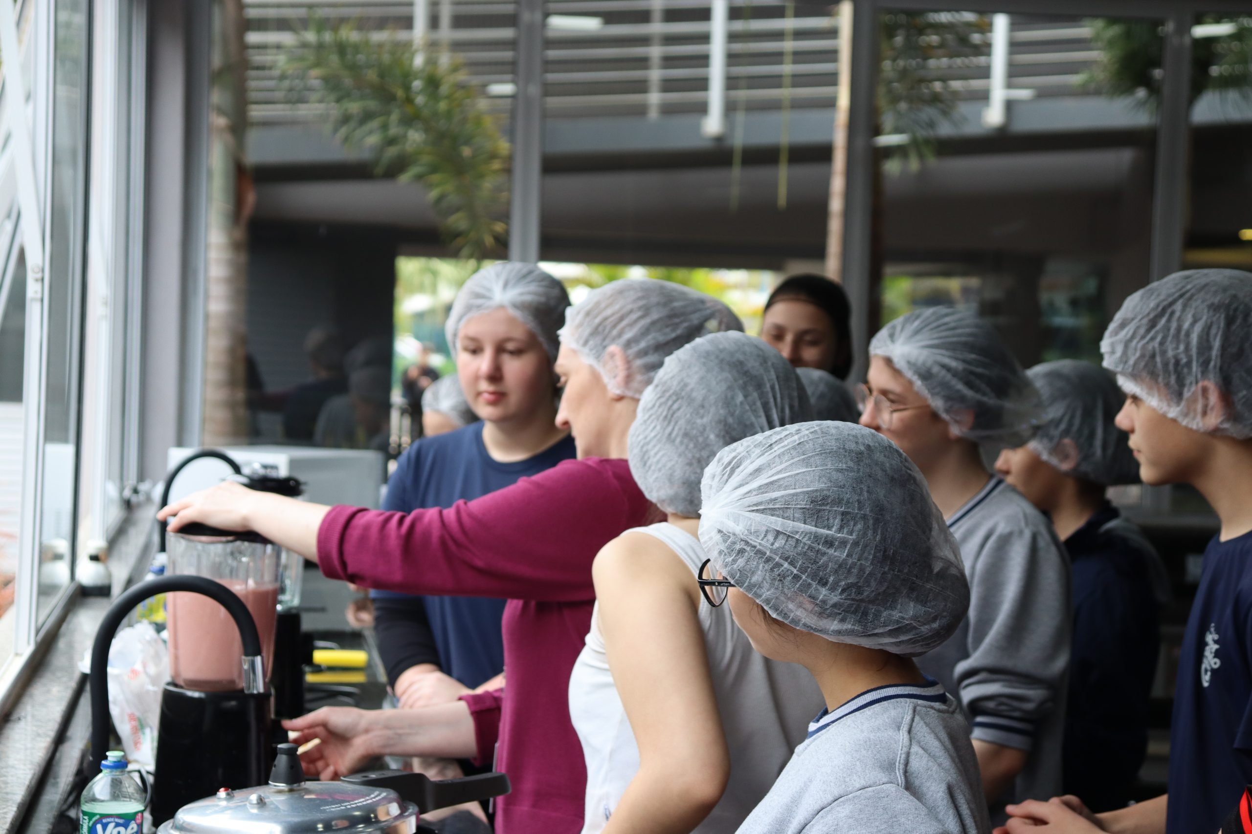 Os estudantes do Ensino Fundamental/Anos Finais se envolvem em oficinas culinárias que permitem reproduzir ou recriar pratos típicos, a fim de construir uma experiência que fortaleça o senso de comunidade e reconhecimento dos alimentos que são produzidos em áreas agrícolas no Alto Vale do Itajaí.