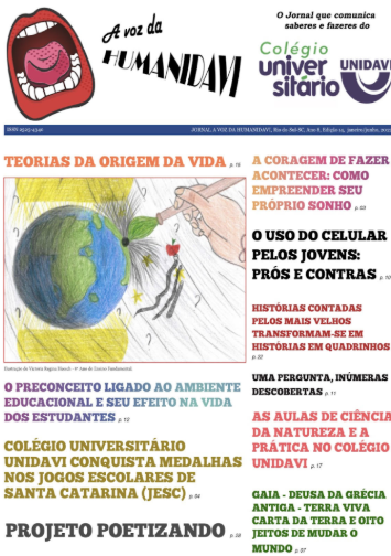 Desafio cumprido: nasce o jornal A VOZ DA HUMANIDAVI, uma publicação autoral do Colégio Universitário Unidavi que reúne interdisciplinaridade e tecnologia como recurso didático. A distribuição é gratuita e direcionada a toda a comunidade escolar e seus familiares.