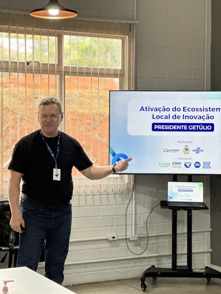 Em junho/2025, o Campus da Unidavi de Presidente Getúlio sediou a oficina que marcou o início do Programa de Ativação do Ecossistema Local de Inovação. Uma proposta que objetiva sensibilizar lideranças, conectar atores locais e formar uma base de empreendedores para futuras trilhas de pré-incubação e projetos inovadores.