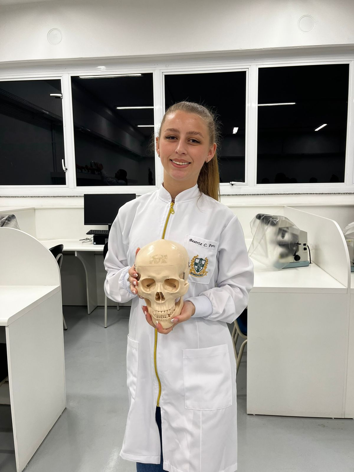 A aula prática de Biomedicina, realizada nos dias 17 e 25 de novembro, proporcionou aos acadêmicos contato direto com as estruturas anatômicas no Laboratório de Anatomia. Durante a atividade, os estudantes exploraram peças reais do corpo humano, aprofundando a compreensão da anatomia humana de forma aplicada.