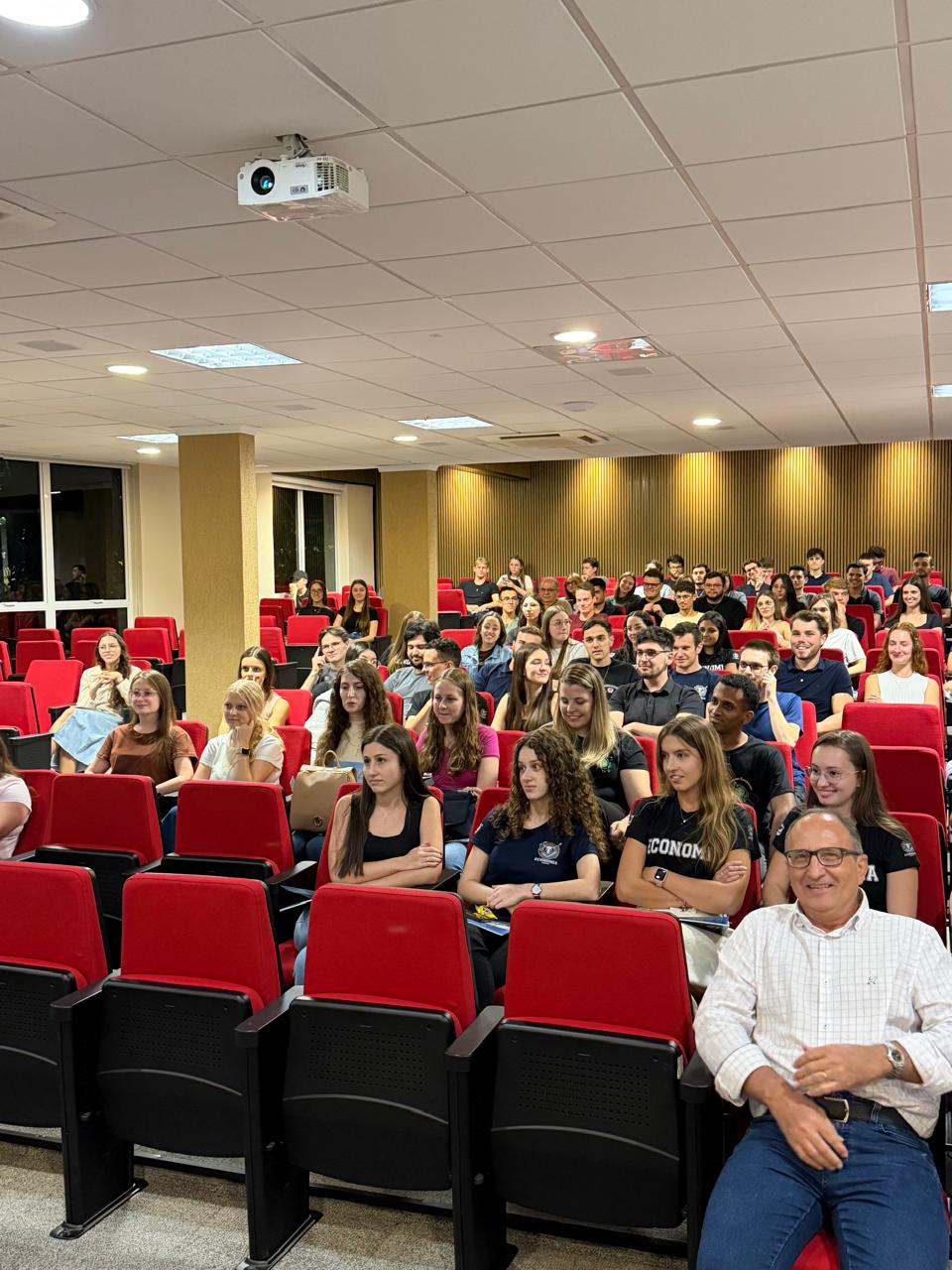 No dia 2 de março, primeiro dia do semestre letivo na Unidavi, o curso de Ciências Econômicas promoveu um momento especial de acolhida e integração entre estudantes e professores. O encontro ocorreu no Auditório Viegand Eger e marcou o início das atividades acadêmicas do semestre.