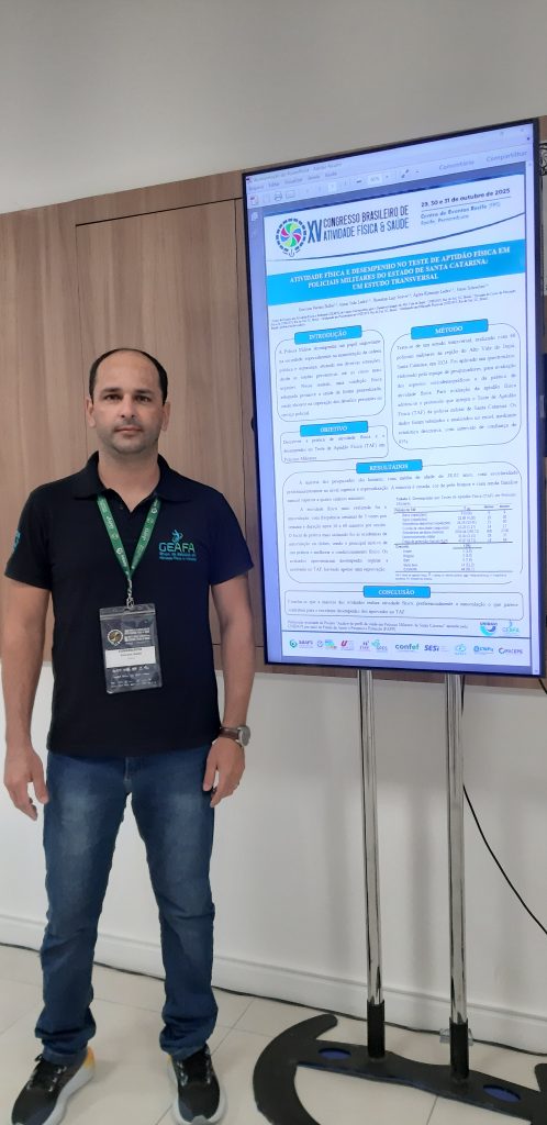 A Unidavi apoiou a participação por meio do Programa Institucional de Participação em Eventos Científicos. Durante o congresso, o professor apresentou o trabalho “Atividade Física e Desempenho no Teste de Aptidão Física em Policiais Militares do Estado de Santa Catarina: Um Estudo Transversal.”
