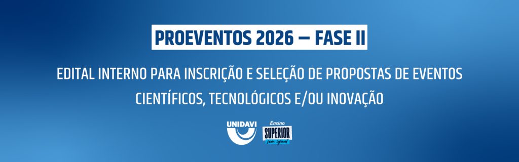A Unidavi, por meio da Propexi, lança o edital interno para inscrição e seleção de propostas de eventos científicos, tecnológicos e/ou de inovação de curta duração, com vistas à submissão ao Edital Fapesc nº 006/2026 – Proeventos 2026 – Fase II.