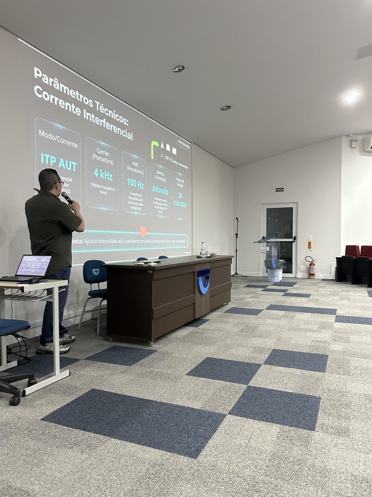 A atividade foi conduzida pelo professor Me. Luis Otávio Matsuda. Durante o encontro, ele abordou a atualização dos principais recursos da eletrotermofototerapia. Também destacou a importância da evolução científica e da correta aplicação dos parâmetros terapêuticos.