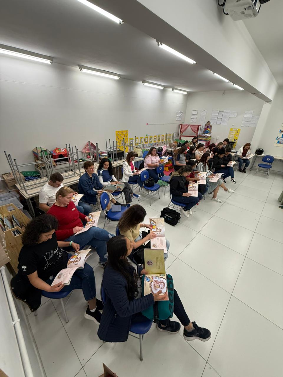 Na noite de 22 de outubro, os acadêmicos do curso de Pedagogia da Unidavi participaram de uma experiência literária e artística inspiradora. A atividade reuniu uma roda de conversa e uma oficina de Kamishibai, conduzidas pela atriz e produtora Thyara Nascimento Hirano, integrante do Teatro Dori e autora do livro infantil “Udo”, lançado recentemente em 9 de outubro.
