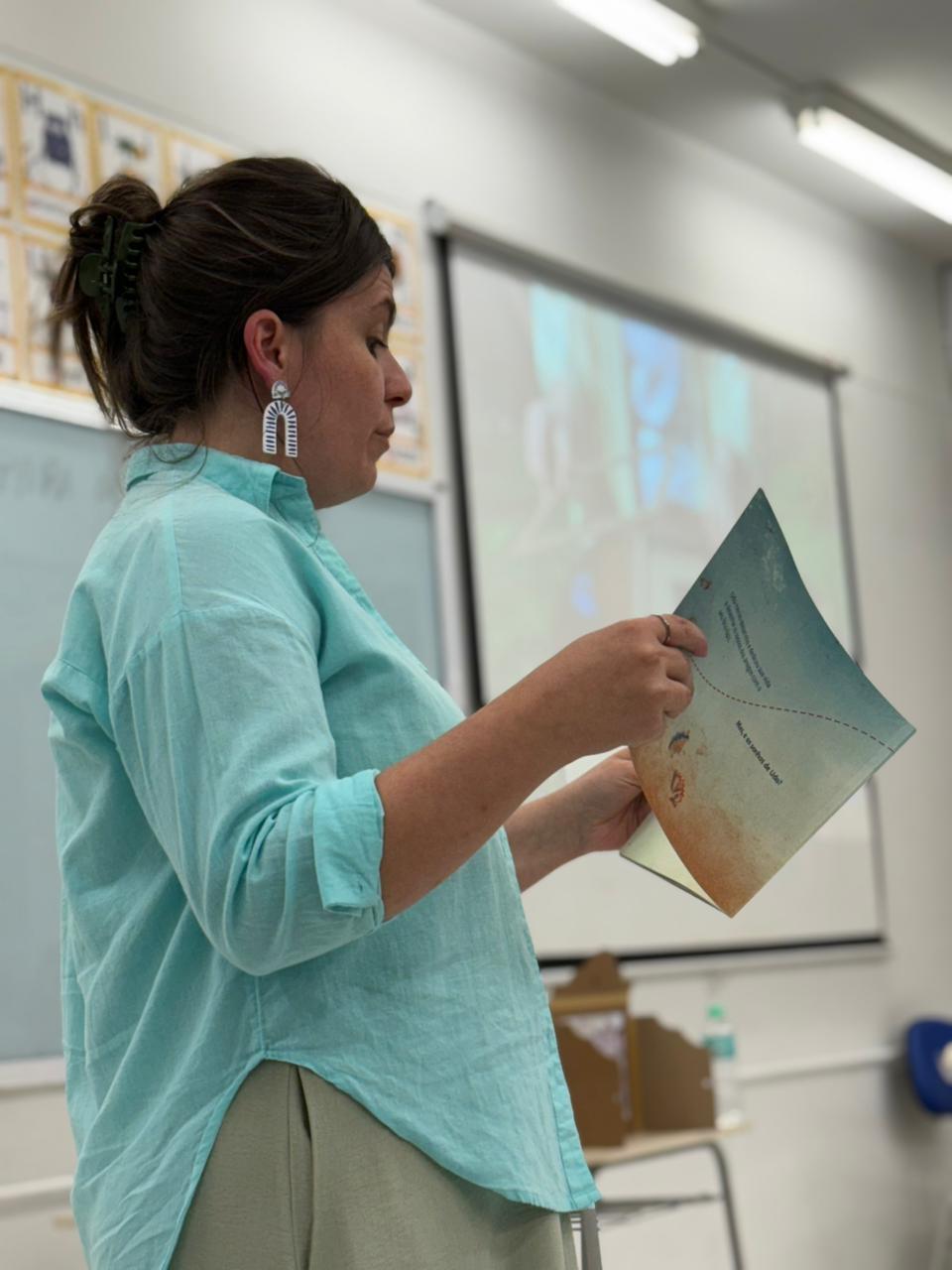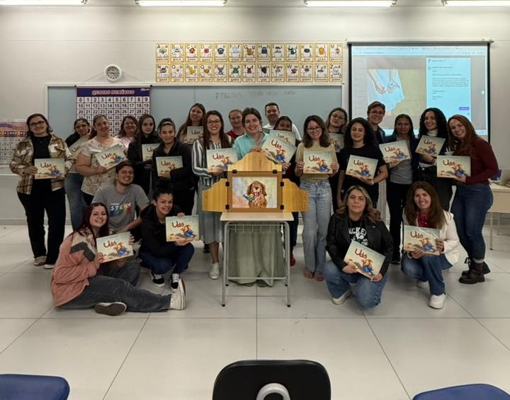 A proposta apresentou aos participantes o universo criativo por trás da obra, que une a delicadeza da literatura infantil com as técnicas do teatro japonês de papel, o Kamishibai. No livro, a autora narra a história de uma pequena ave azul que, com um lápis de cor no lugar do bico, descobre a amizade, a criatividade e a aceitação de si mesma.