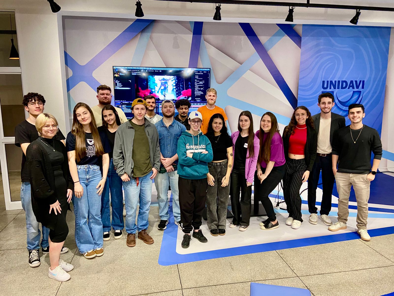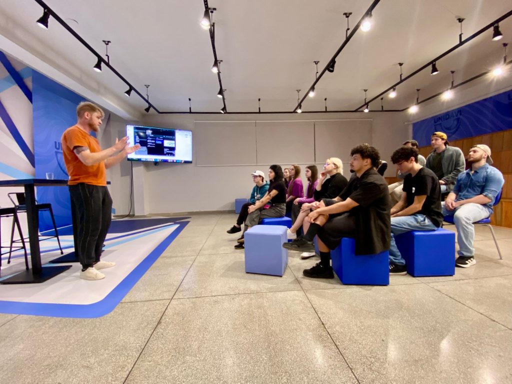 Os acadêmicos da 4ª fase de Produção Multimídia da Unidavi participaram, na noite de 12 de novembro, de um bate-papo voltado ao universo do motion design. A conversa contou com a presença do egresso do curso de Design Gráfico da instituição, Vitor Niggemann, que compartilhou sua trajetória profissional e destacou as oportunidades emergentes no setor.
