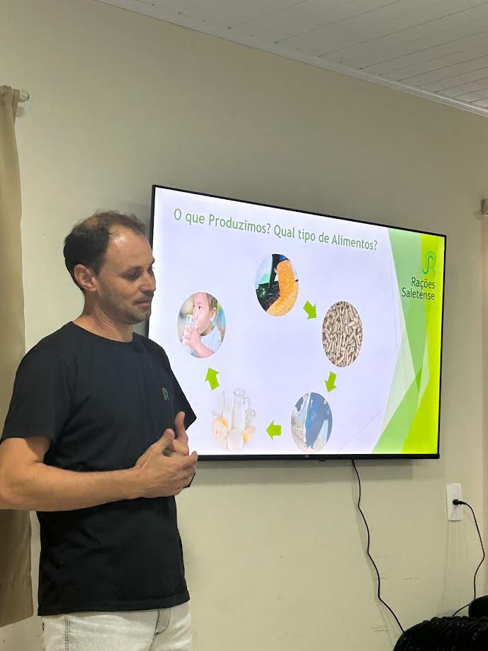 Os alunos foram recebidos pelos diretores Feliciano Tamanini e Edina Schmoller Tamanini, e pelo Gerente Técnico Comercial, médico veterinário Roberto Augustini. Durante a recepção, ele apresentou o histórico da empresa, sua atuação e a importância da Rações Saletense para o agronegócio regional.