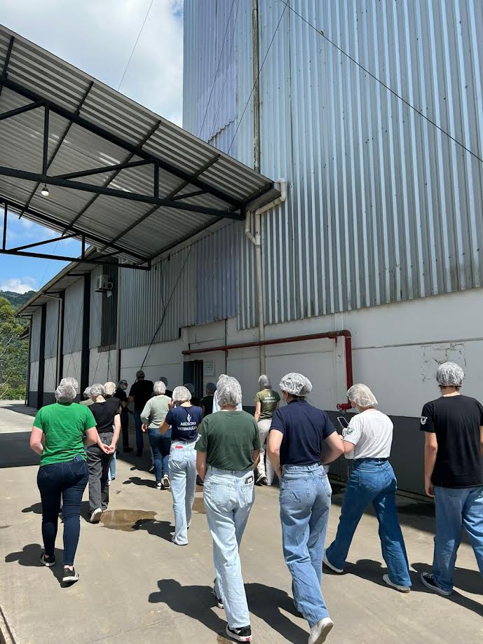 Na sequência, a Coordenadora de Qualidade e Tecnóloga em Assuntos Regulatórios, Tânia Aparecida Gramza, conduziu o grupo pela fábrica. Ela explicou o fluxo de produção, o trabalho do setor de qualidade e as atividades do laboratório, destacando os cuidados essenciais para garantir segurança e conformidade dos produtos.
